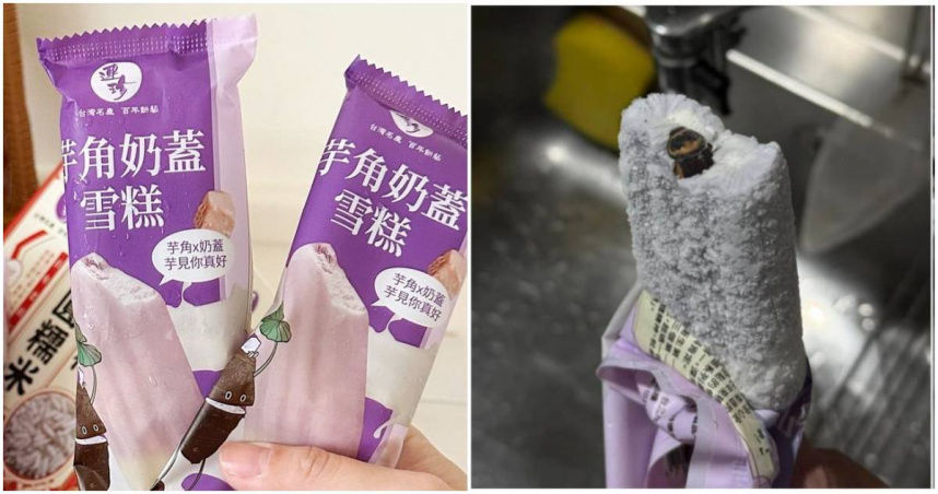 ▲有民眾在超商購買「連珍芋角奶蓋雪糕」,驚見整隻大蟑螂。(圖/翻攝FB/爆料公社、日亞特選名物)