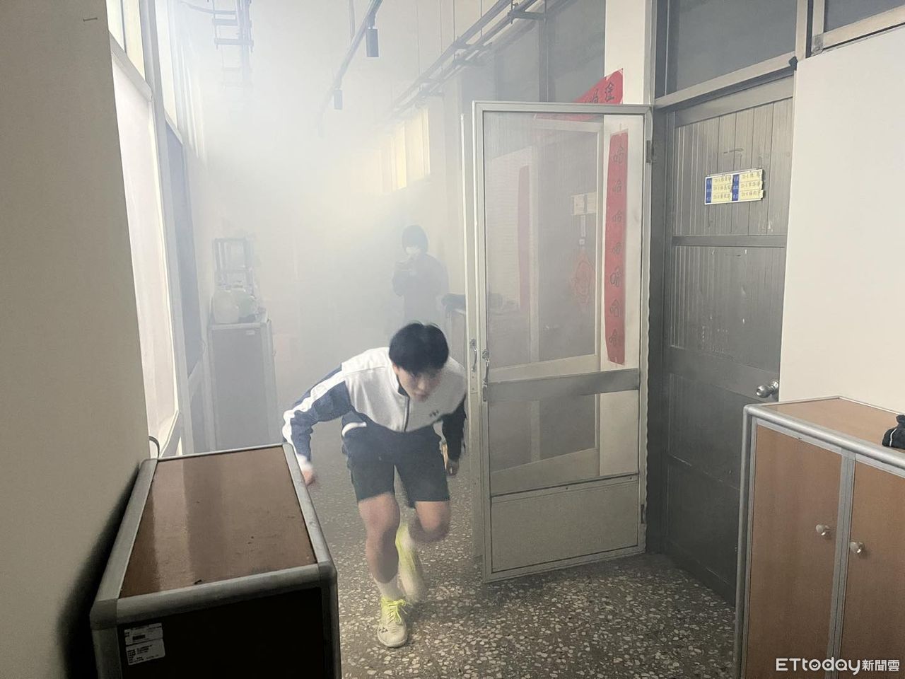 ▲基隆高中防火演練 學生實境學習火場逃生要領。(圖/記者郭世賢翻攝,下同)