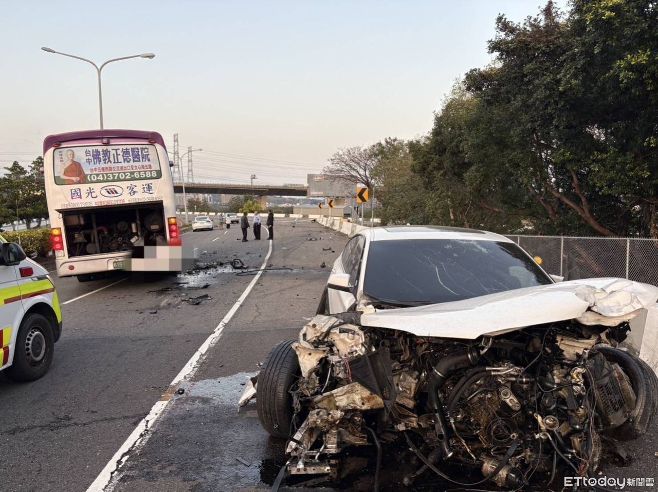 彰化縣消防局今天傍晚5點32分接獲據報,彰化市中山路三段大度橋往台中方向發生多輛自小客車與國光客運大客車發生車禍,立即出動消防救護人員前往執行緊急救護。
