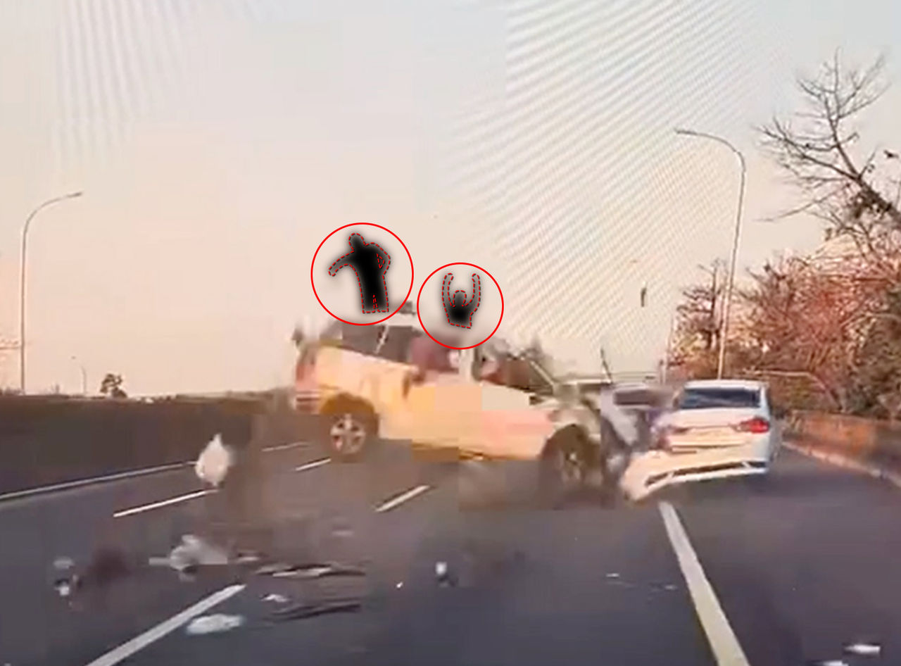 照片當中可以看見,這起車禍發生的瞬間,有2人被拋飛出車外,隨後重重摔落在地上,現場畫面一片狼藉,可見撞擊力道相當大。
