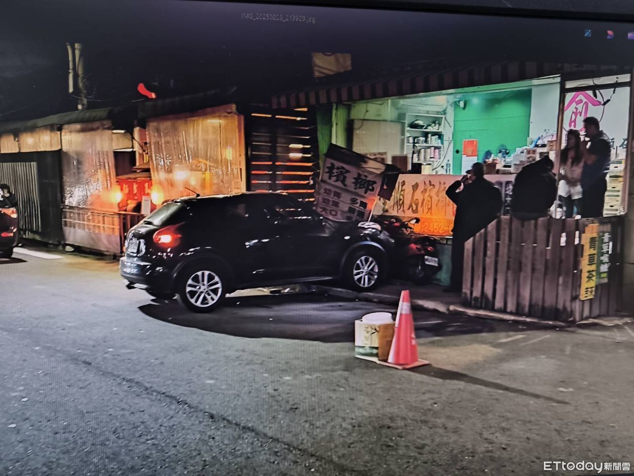 路口監視器顯示,林男車輛突然往左急轉,直接衝撞檳榔攤,將招牌燈撞毀,老闆娘當時就坐在店內營業,看到車差點就撞到自己,嚇得趕緊起身查看。