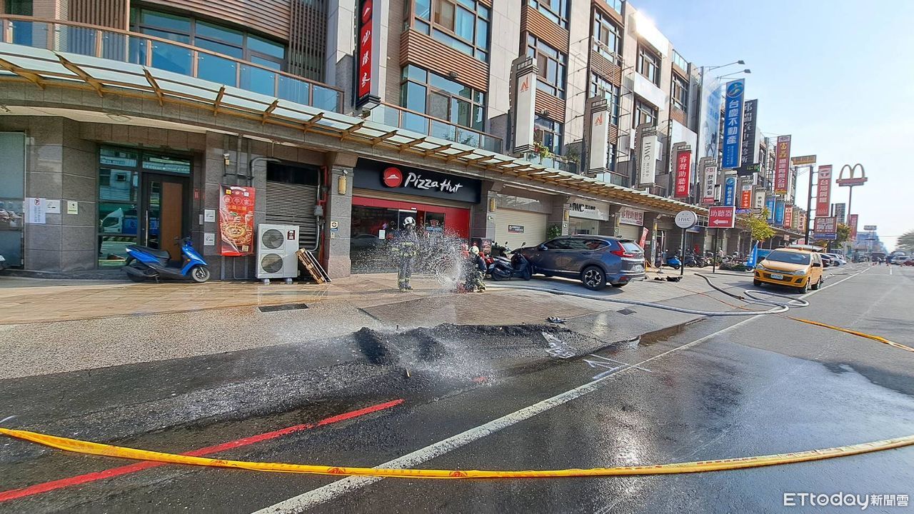 ▲彰化縣北斗鎮中山路二段施工時不慎挖破瓦斯管線 。(圖/記者唐詠絮翻攝,下同)