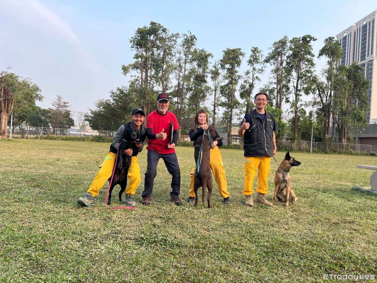 ▲高雄市消防局日前參與搜救犬領犬員進階訓練及國際搜救犬認證評測,6組警義消領犬員及搜救犬全數通過。(圖/記者吳世龍翻攝)