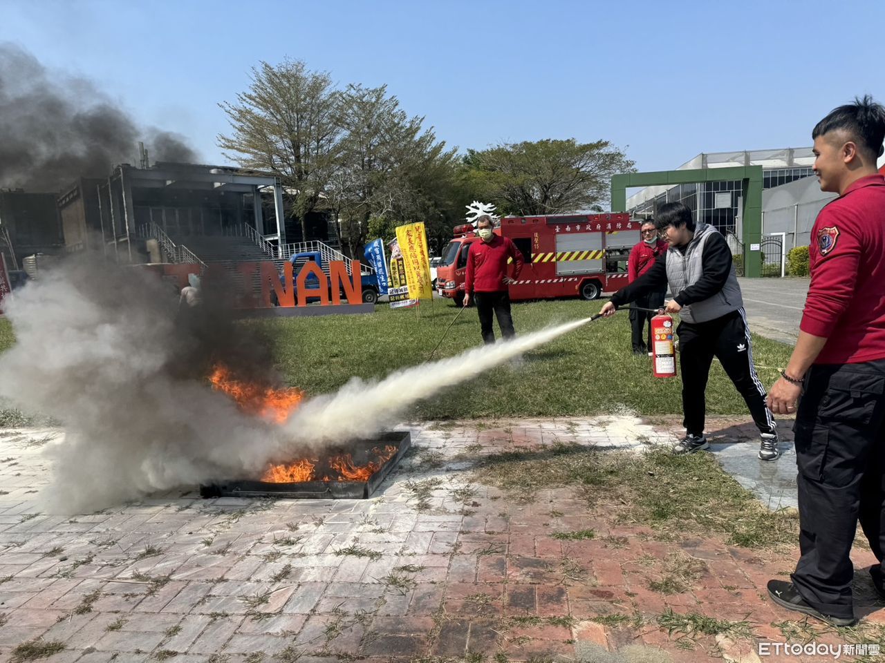 蘭展期間人潮湧現,現場布置繁多,電氣設備使用頻繁,若管理不慎,恐將提高火災風險。因此,後壁消防分隊特別針對自衛消防編組的運作方式進行詳細講解,包括初期滅火、通報、緊急應變及人員疏散等重要程序,確保工作人員在突發狀況時能夠迅速應對。此外,消防人員也向展覽業者及工作人員示範滅火器、室內消防栓及自動警報系統的正確操作方式,確保場內人員熟悉使用,能夠在緊急情況發生時即時應對,減少財物損失,並保障民眾安全。