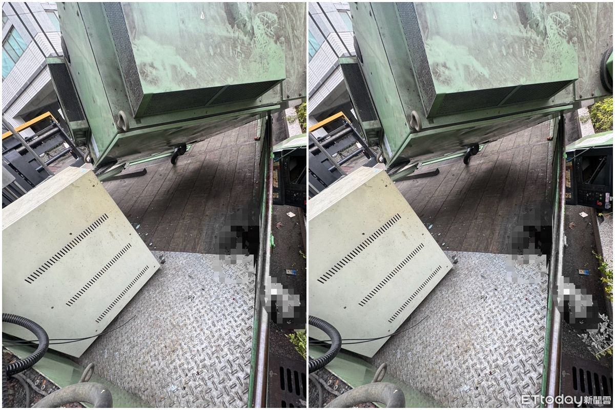 ▲貨車司機遭機台砸中,送醫搶救中。(圖/記者陳以昇翻攝)