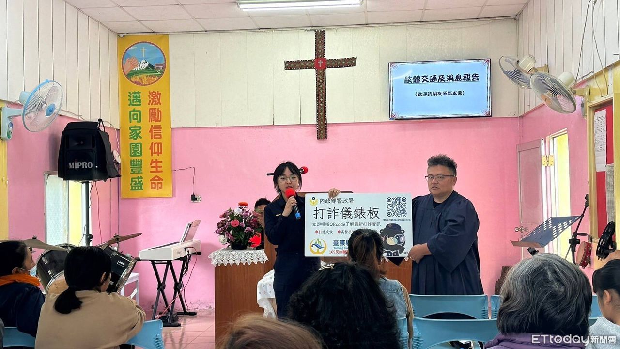 ▲警方深入教會宣導交通安全與反詐。(圖/記者楊漢聲翻攝)