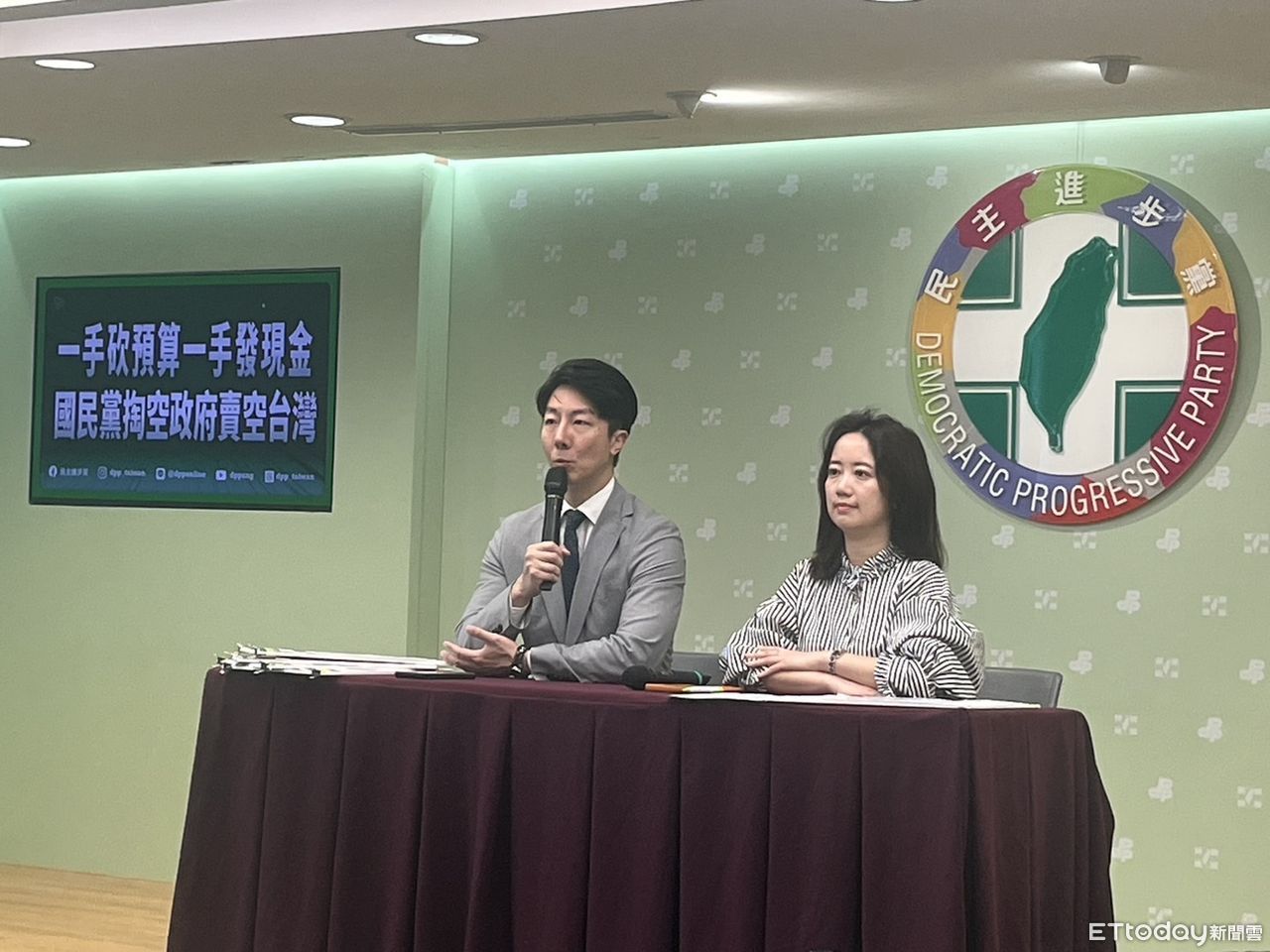 ▲民進黨發言人吳崢、戴瑋姍。(圖/記者杜冠霖攝)