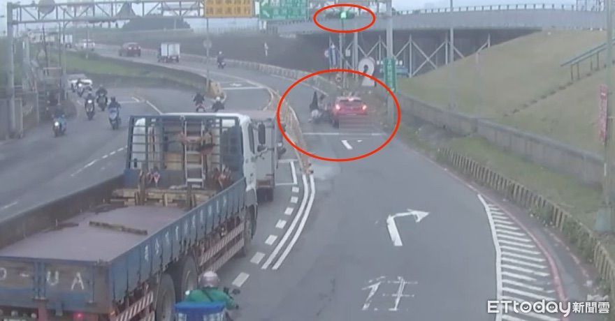 據悉,26日上午10時許,43歲陳姓男子騎乘黃牌大型重機行經蘆洲區環堤大道與二號越堤道口,往越堤道方向前進,見右彎多時向號誌燈轉換,緊急煞停,沒想到後方24歲陳男駕駛小客車未注意號誌燈已變,直接追撞這部黃牌大型重機。