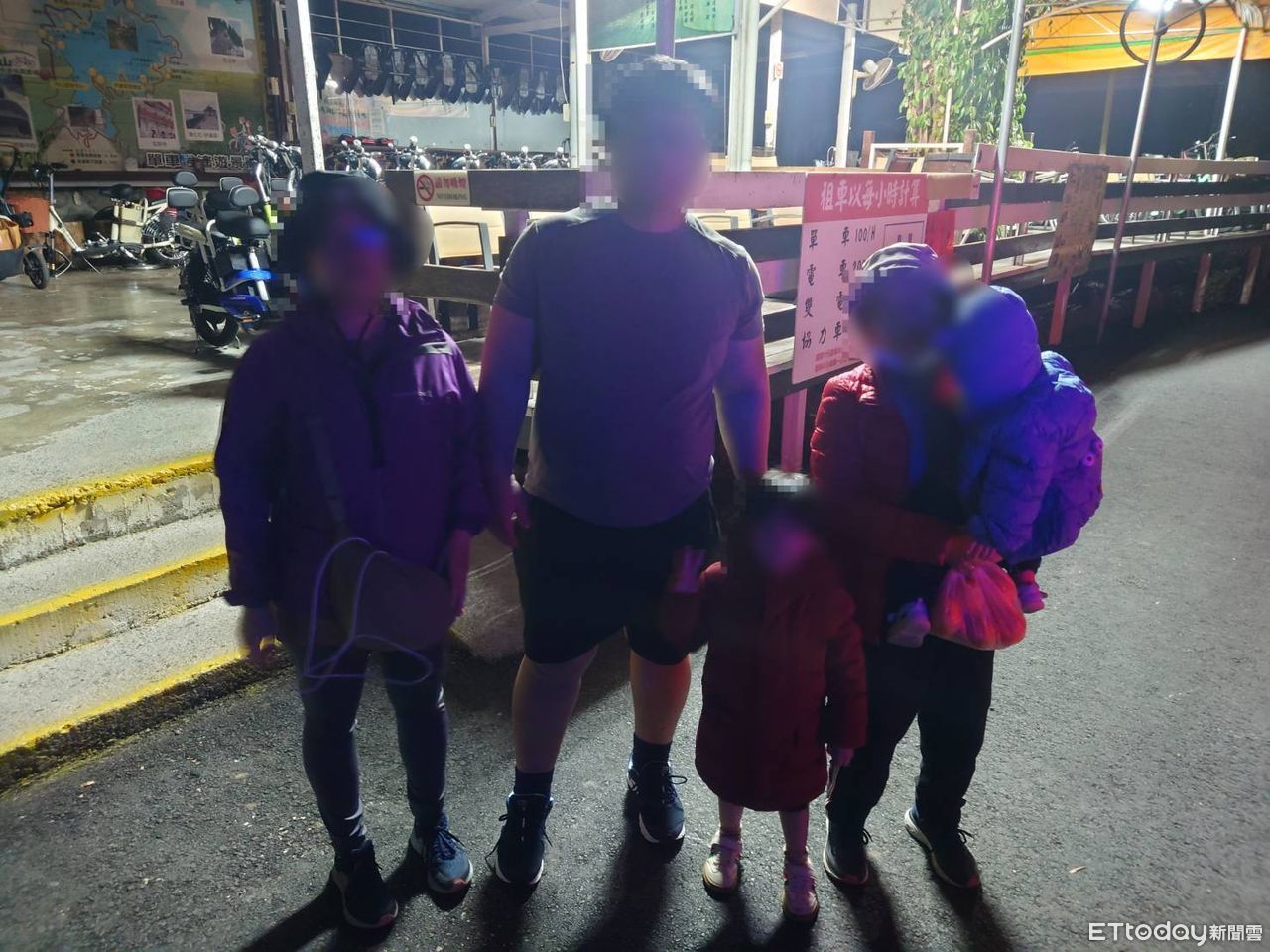 ▲一家5口老小騎電動自行車遊日月潭卻遇電力耗盡受困,獲集集警方暖心救援 。(圖/記者高堂堯翻攝,下同)