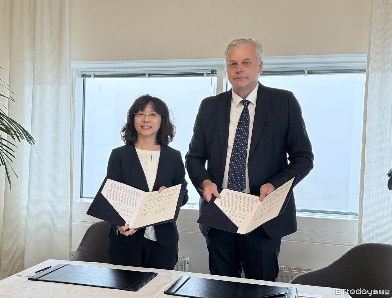▲民航局長何淑萍、芬蘭民航局長Jari Pöntinen於芬蘭首都赫爾辛基簽署台芬航空服務協議。(圖/民航局提供)