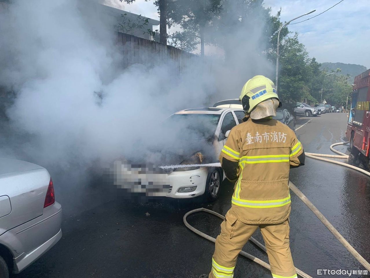 台南市關子嶺正覺寺大門往上15公尺處,2日上午9時16分許驚傳火燒車件,台南市消防局119勤務中心據報,出動一大隊消防人車前往搶救,消防人員到場發現是一部自小客車,剛停放好車頭突然冒煙起火,人員及時逃生,消防人員迅速射水撲滅火勢,火勢未延燒,起火原因及財物損失由消防局調查處理中。