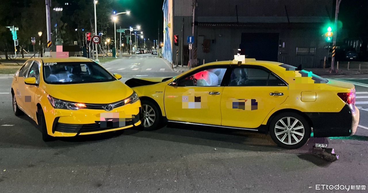 事故發生在3日凌晨12點55分,警方獲報,三民區中華三路、鐵道三街口發生車禍,員警趕抵現場時,發現是2部計程車發生碰撞,力度看似相當大,後方計程車安全氣囊爆開,引擎蓋也凸起,前方遭撞的計程車則是90度大旋轉。