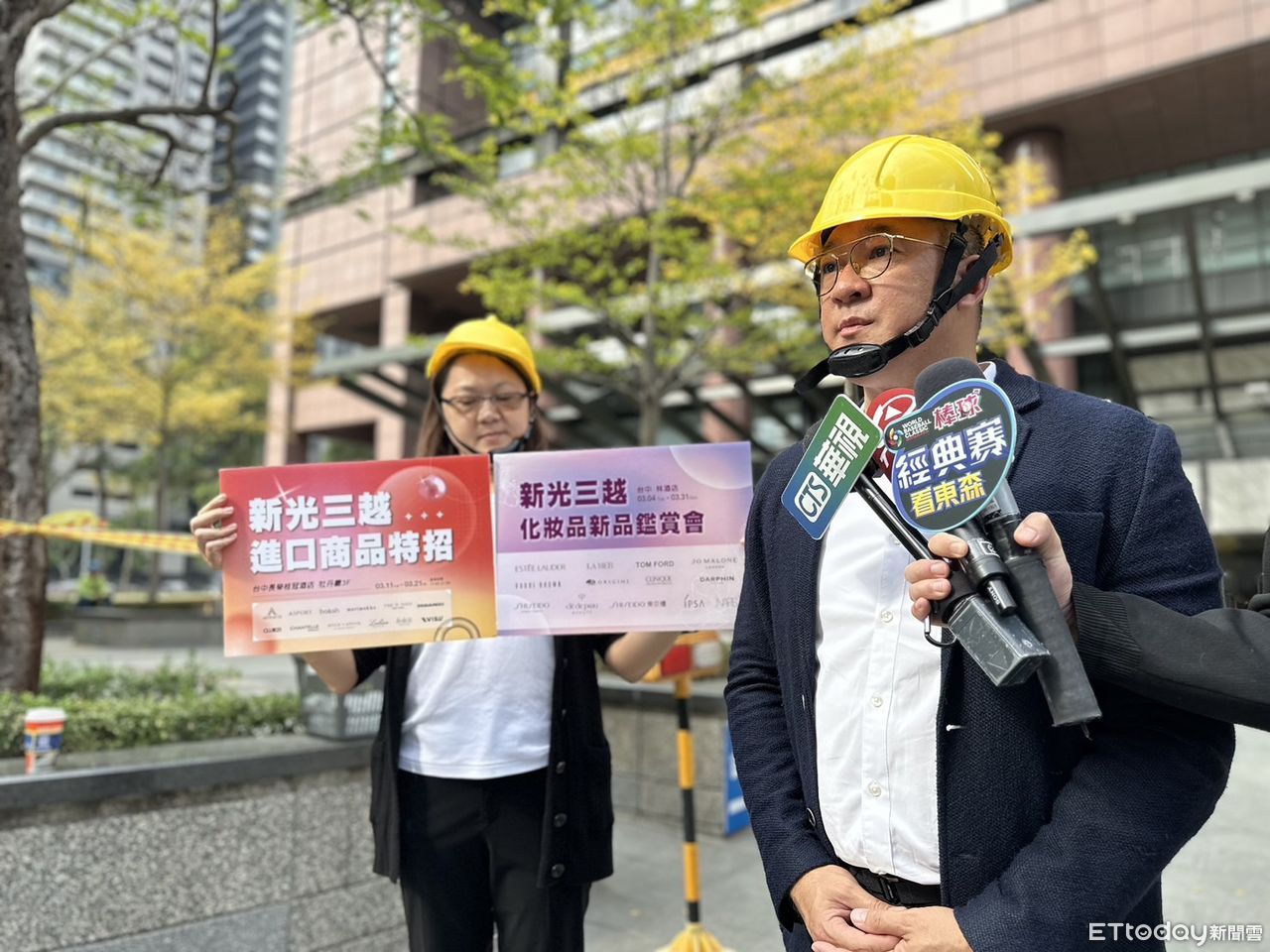 ▲新光三越公關協理張家齊(右者)接受訪問。(圖/記者白珈陽攝)