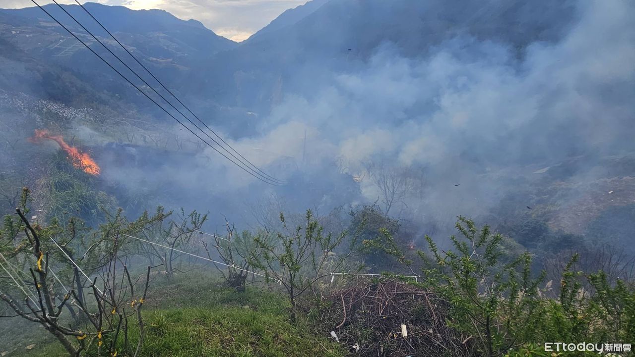 ▲台中梨山發生火災燒毀工寮及果樹,所幸及時撲滅未延燒下方森林。(圖/記者李陳信得翻攝,下同)