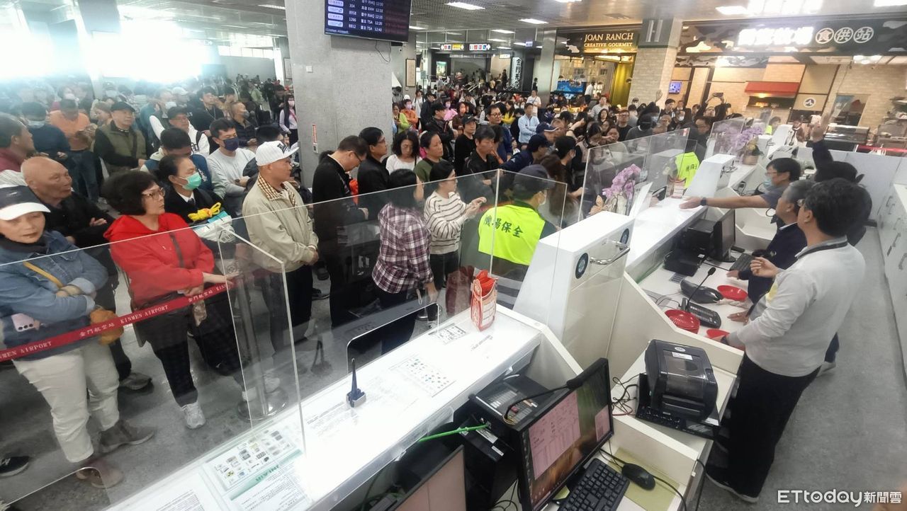 ▲霧鎖金門3天,約2000人擠滿機場。(圖/記者林名揚翻攝)