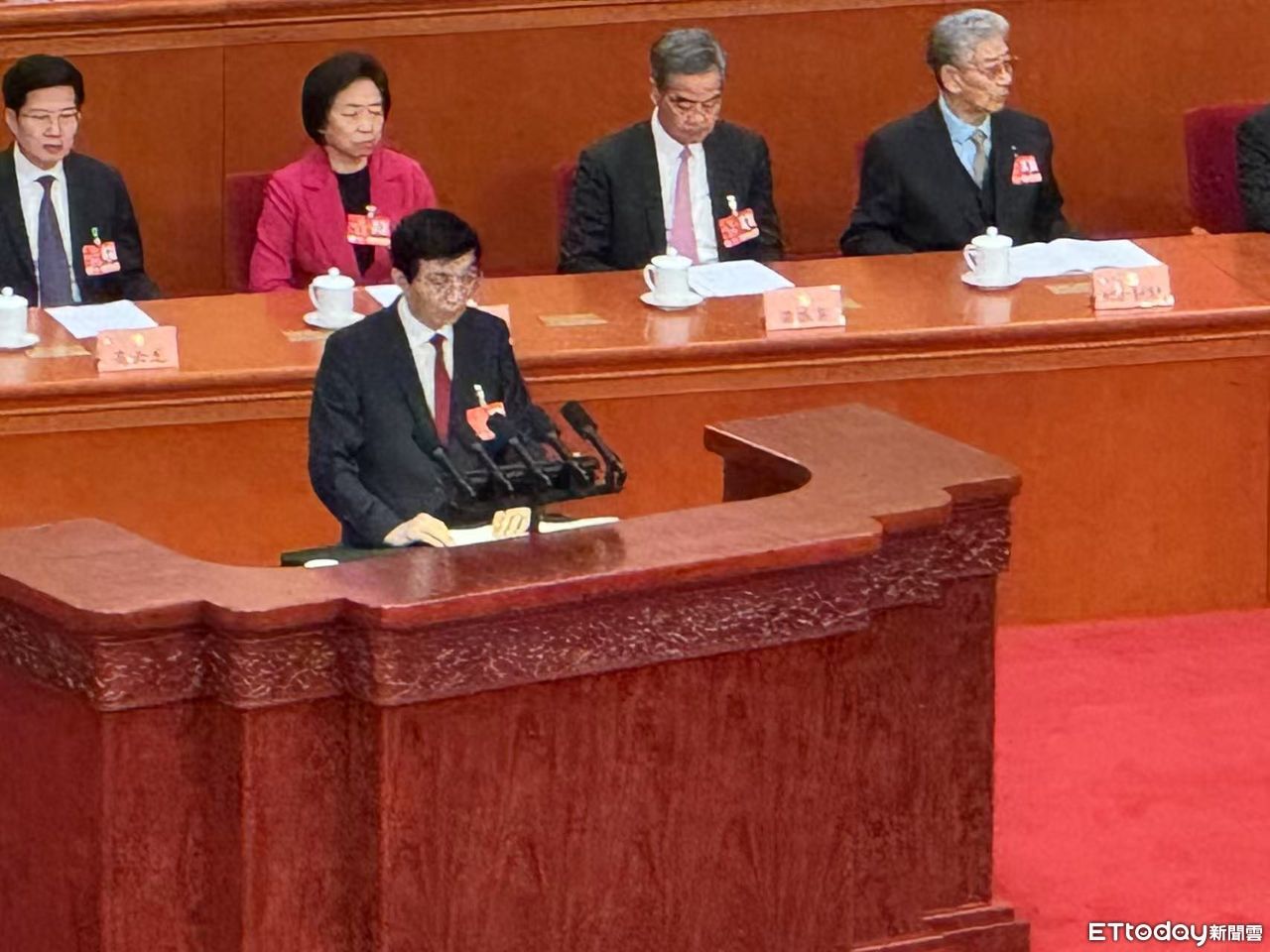 ▲中共中央政治局常委、全國政協主席王滬寧發佈政協工作報告,涉台內容「一字未提」 。(圖/記者任以芳攝)