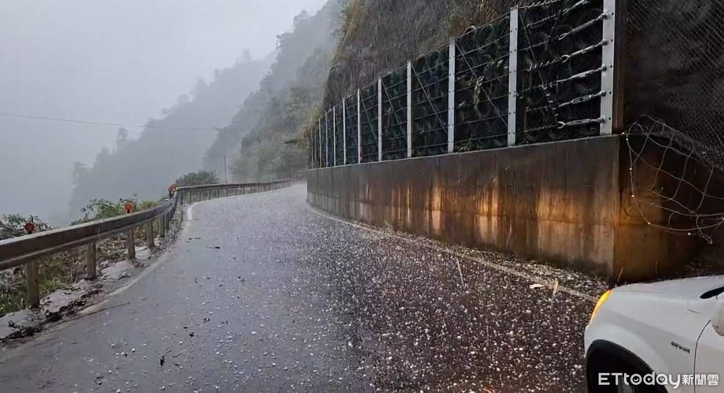 ▲▼ 今(4)下午中部山區下起大雨及冰雹,中橫便道行駛車隊立即引導至隧道內停駐,車隊延誤半小時才離開。(圖/記者李陳信得翻攝,下同)