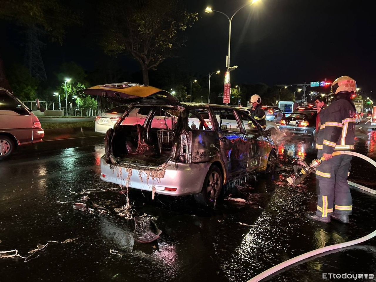▲8日深夜北市承德路發生一營業小客車火燒車意外。(圖/記者張君豪翻攝,下同)