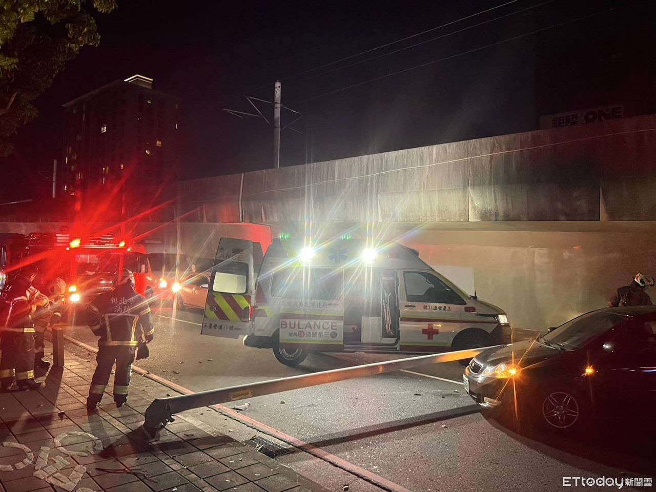 新北市淡水區濱海路一段與中山北路口昨(9日)晚間發生一起自撞事故!一名48歲朱姓男子疑似因疲勞駕駛,行經事故路段時,失控自撞路邊燈桿,直接把燈桿撞倒,還占據2線車道,所幸朱男僅受到輕微擦挫傷,也未造成其他人員傷亡。