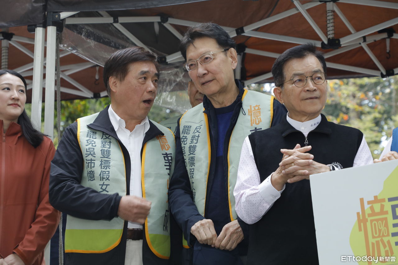 ▲前中廣前董事長趙少康(中)、郝龍斌前市長(左)、賴士葆委員(右)日前為藍營罷免團體加油打氣。(圖/記者湯興漢攝)