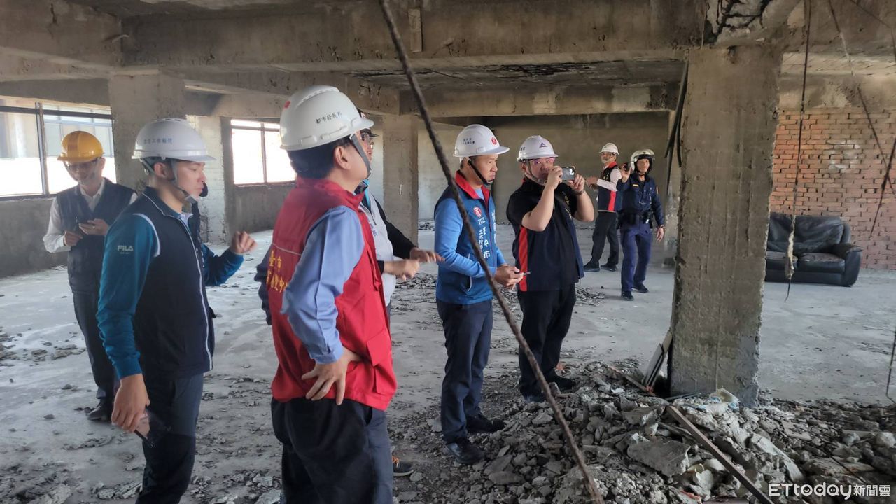 都發局長李正偉會同台中市建築師、土木技師、結構技師等三大公會共同現勘,初勘採取三項措施,包括今天下午1點至3點開放4樓以下安全樓層的民眾短暫入內取物,明天以長臂抓斗清除5、6樓層塌陷的水泥石塊,減少4樓樓板載重。
