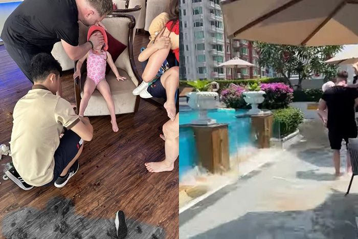 「我本來準備躲到桌子下,但一看到泳池內兩個大約2歲和4歲的小孩在驚慌大叫,我立刻衝了過去。」鄭凱仁回憶道,當時的情況非常危險,泳池的震動像海浪一樣強烈,玻璃圍欄隨時可能倒塌。