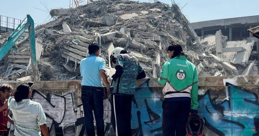 ▲緬甸強震,造成鄰近的泰國曼谷興建中大樓倒塌。(圖/路透)