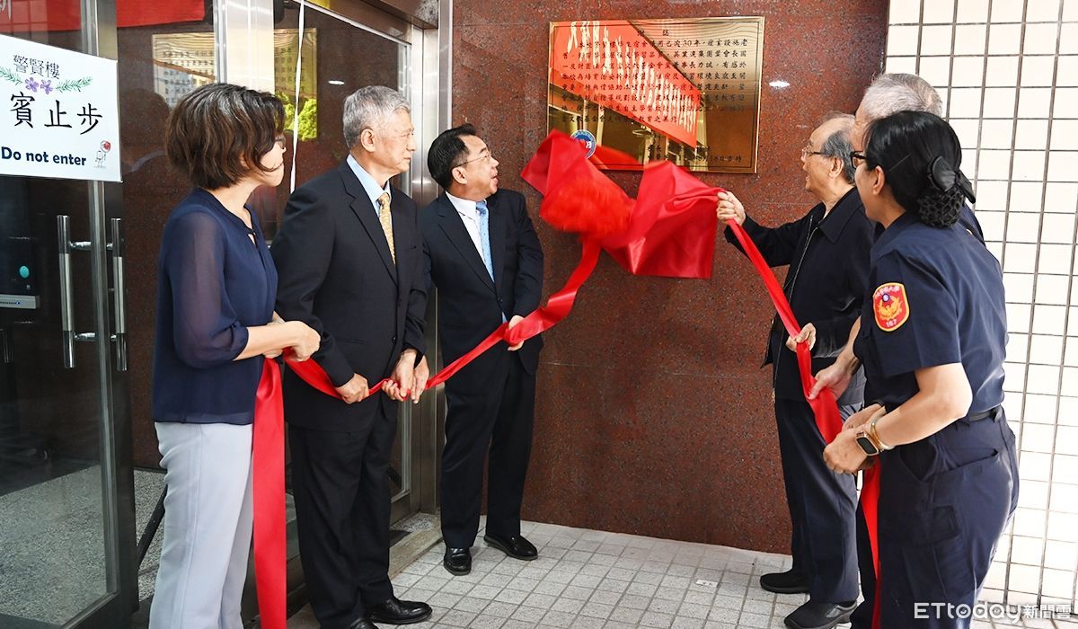 ▲警大警賢樓學生寢室整建更新揭牌儀式,校長楊源明(左三)到場 。(圖/翻攝內政部攝)