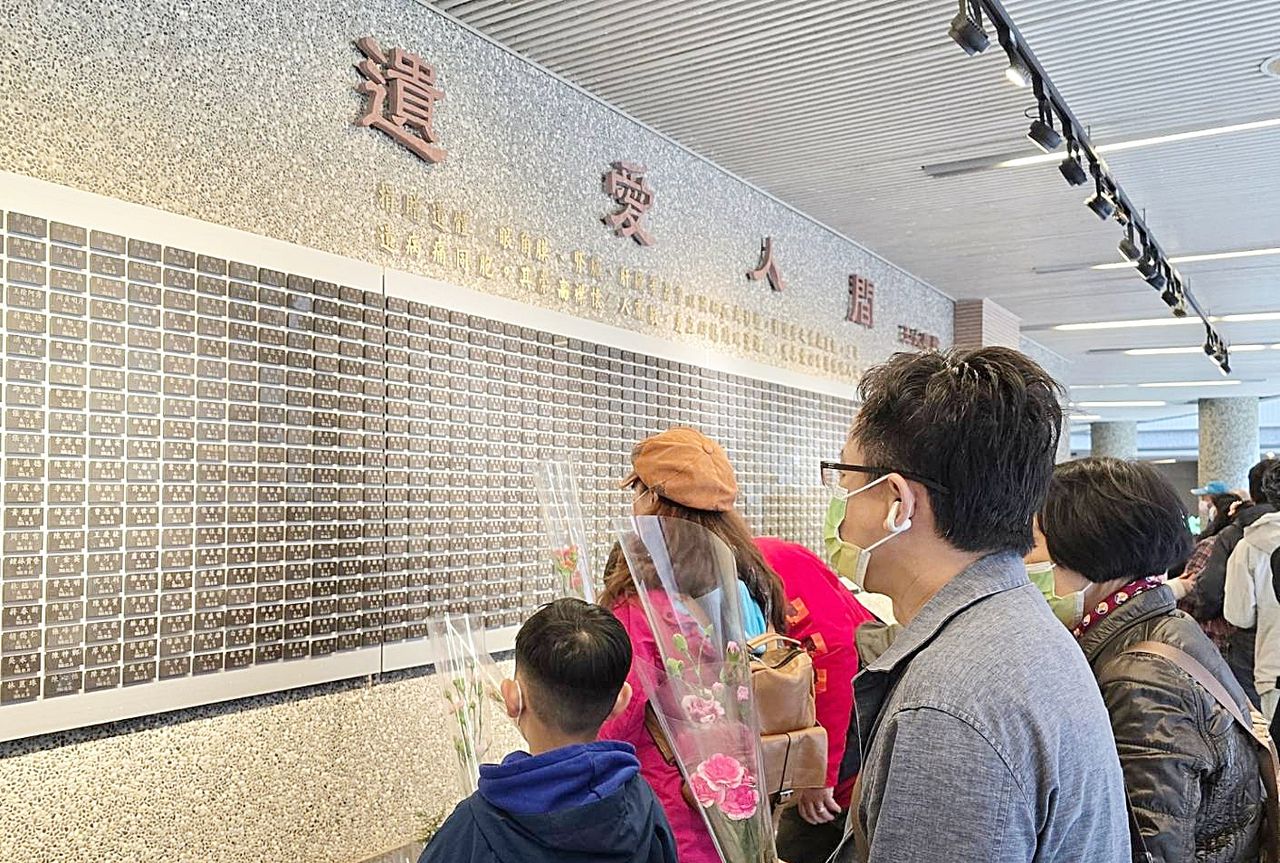 ▲捐贈者家屬前往長庚大學校內的「遺愛人間」紀念牆獻花追思。(圖/林口長庚醫院提供)