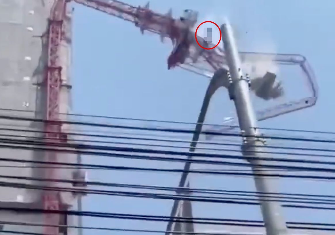 事故發生於曼谷道本區(Tao Poon)一處正在興建的高樓工地。根據當地居民拍攝的影片,起重機吊臂在地震發生時突然崩塌,一名操作員疑似遭震動拋飛,從吊臂中摔出,重墜至鄰近建物。