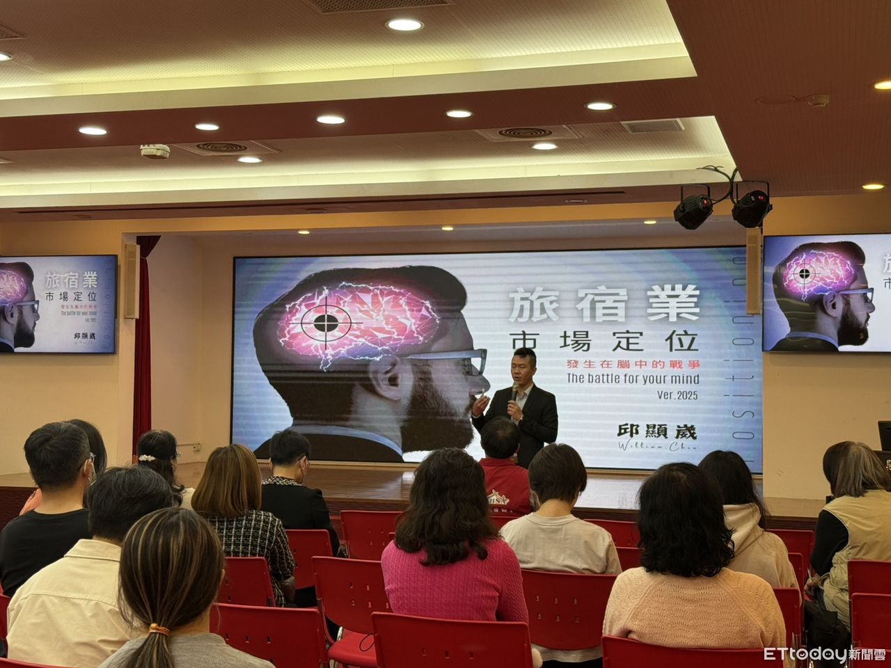 演講主要針對旅宿業市場定位,透過市場五階法在市場中確立自身獨特位置的過程,經營者應充分發揮自身特色和優勢,利用有效的營銷策略,在市場中建立獨特的品牌形象。透過高峰-低谷-結束的三階段服務理論,如何把資源投入屬於民宿「定位」的特色,例如花蓮民宿中最好吃早餐的定位、花蓮最乾淨衛生的民宿等,讓民宿業者創造被消費者「占便宜」的消費選擇,成為在各區隔市場林立中的一個份額存在。