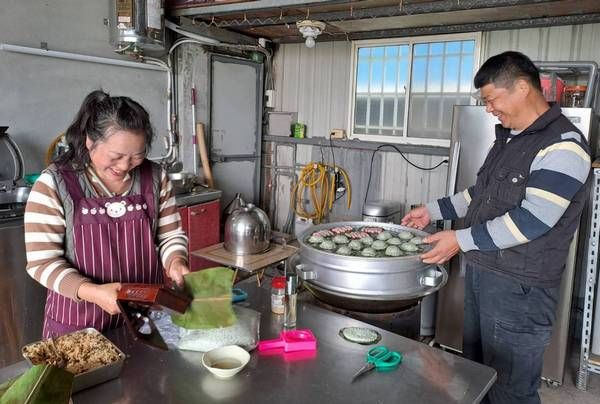 ▲清明祭祖,年輕夫妻阿洽(唸合)、阿芬手做草仔粿,分贈親友。(圖/記者楊淑媛攝)