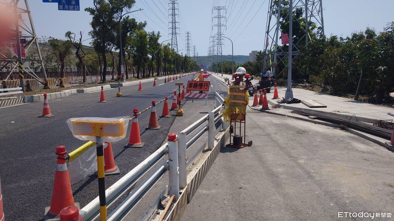▲事故發生後,沿海路段承商以交通錐及連桿區隔警示。(圖/記者賴文萱翻攝)