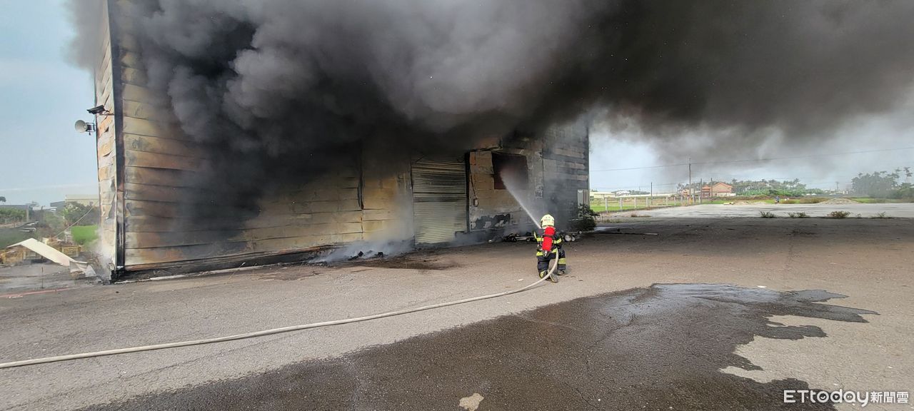 ▲屏東廢棄廠房火警,濃濃黑煙直竄天際。(圖/記者陳崑福翻攝,下同)