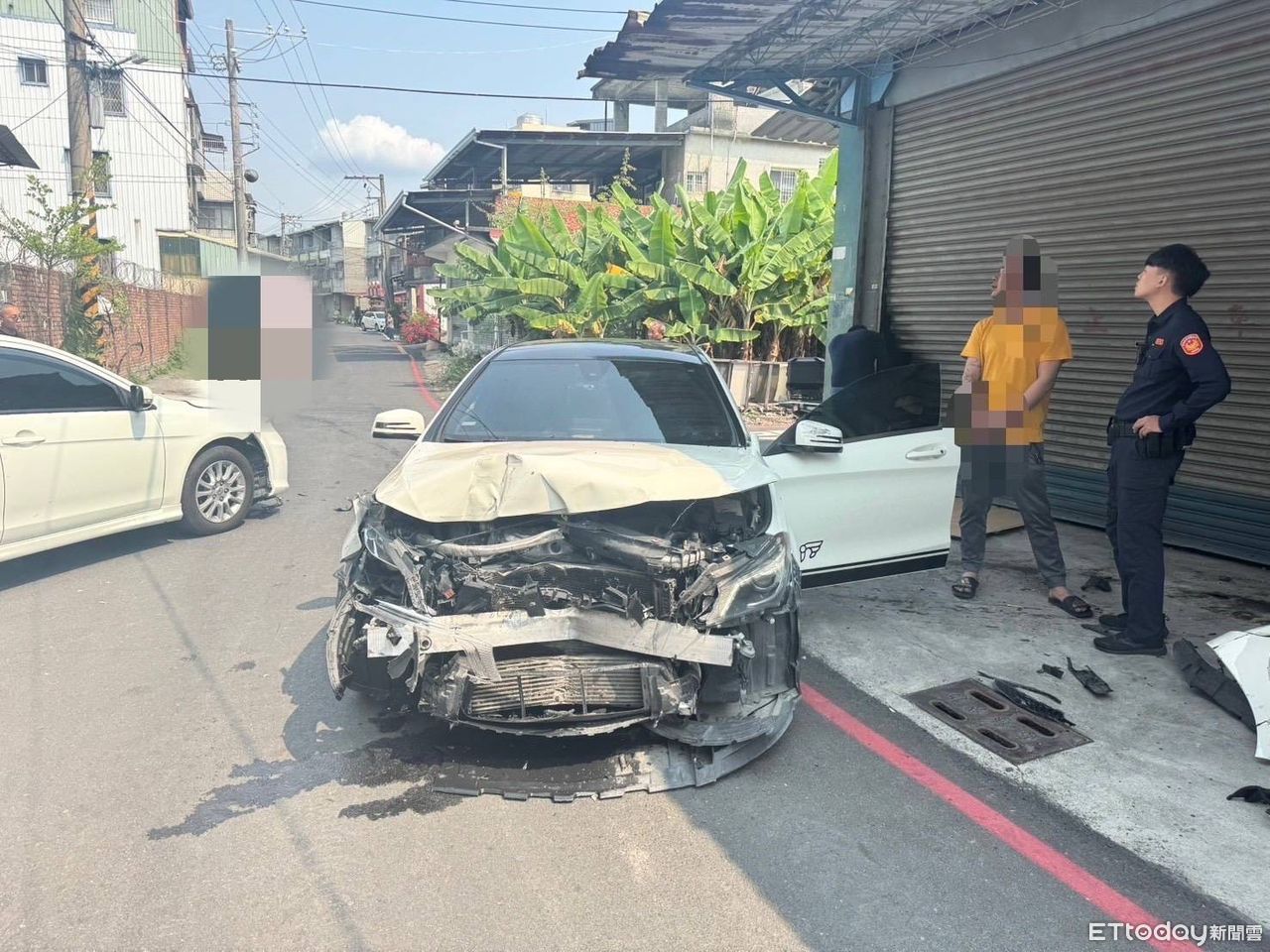 ▲▼賓士男開車來回猛撞前女友坐的轎車。(圖/記者賴文萱翻攝)