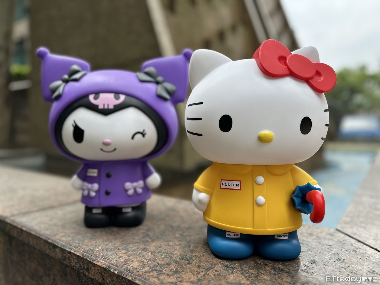 ▲7-11首度與百年品牌HUNTER合作,讓Hello Kitty、KUROMI,穿上HUNTER經典雨靴、雨衣。(圖/記者林育綾攝)