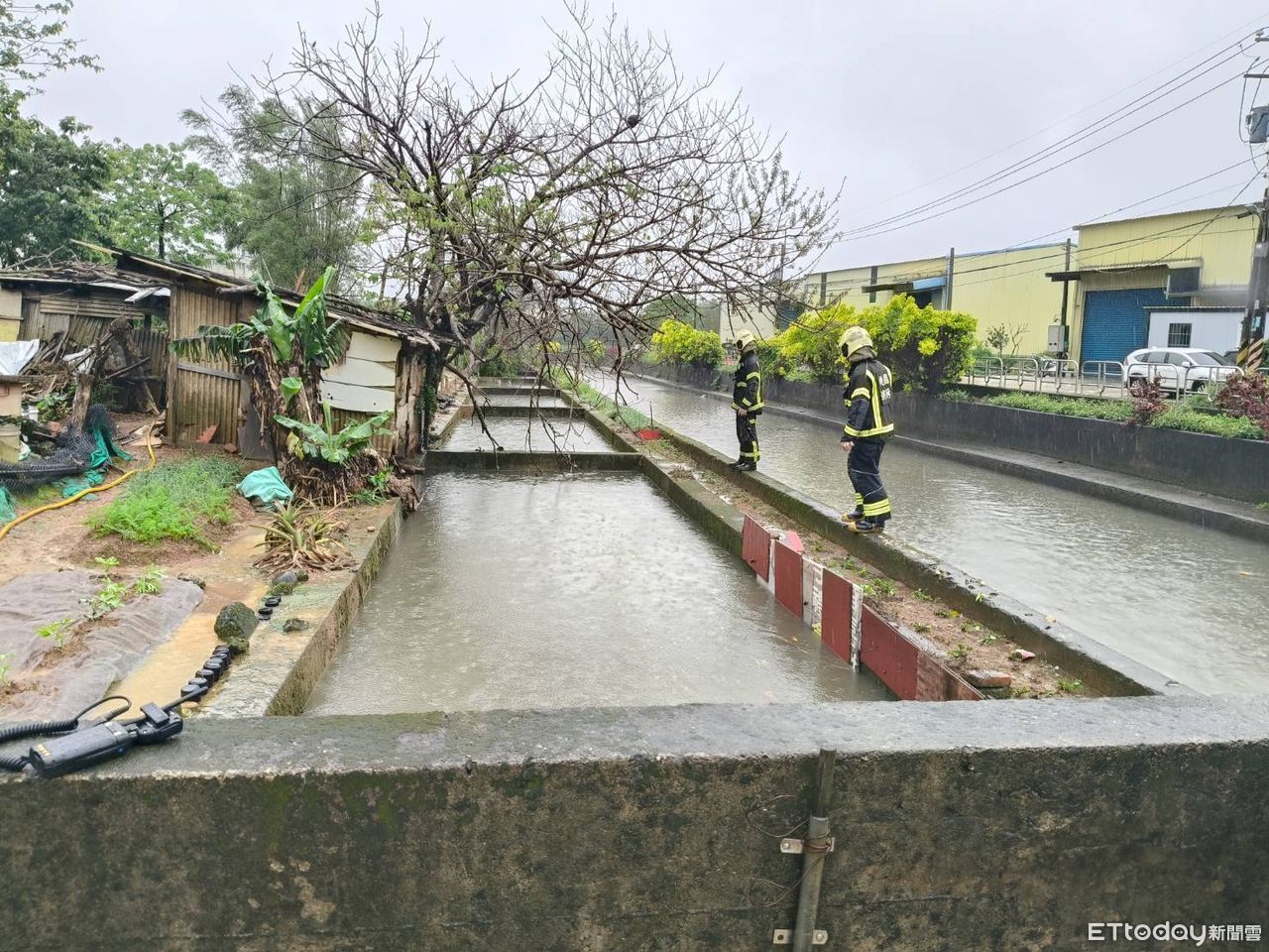 ▲桃園工人遭水沖走,警消找到人了。(圖/記者沈繼昌翻攝,下同)