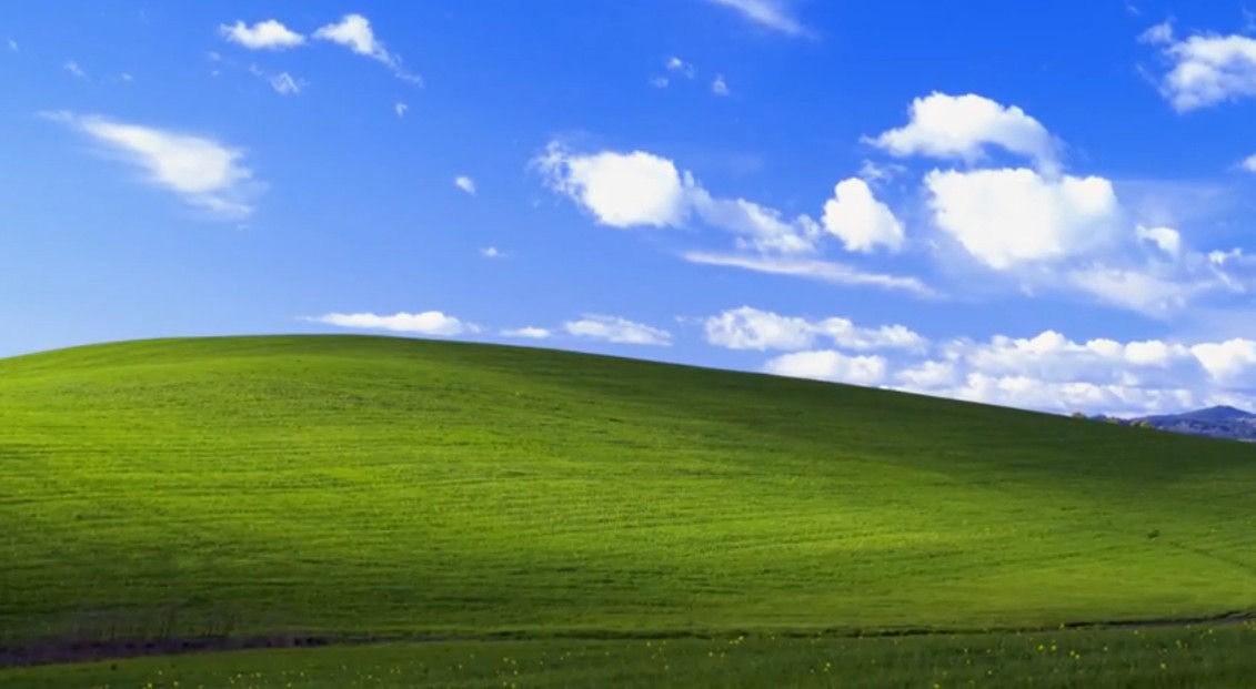 照片的來源是1996年1月,攝影師歐里爾為了找現任妻子,從加州駕車前往馬林縣,途中被如畫的景色吸引,藍天白雲加綠油油的草地,他忍不住按下馬米亞RZ67相機的快門,將這刻美景永恆保留下來。這張珍貴的照片最初是由西光圖片社收錄,後來被微軟收購,成為了Windows XP系統中預設桌布照片。