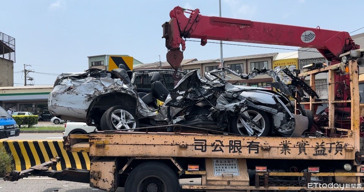 ▲豐田轎車整輛車支離破碎,幾乎全毀,幸駕駛僅受輕傷。(圖/記者白珈陽攝)
