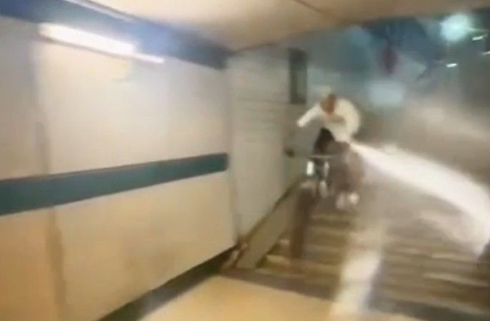 一段民眾上傳至社群平台的影片引發網友熱議!一名男子5月11日在台南市北區公園路圖書館旁的地下人行道,竟騎乘越野自行車直接從階梯一路騎下,隨後在地下道內猛衝,畫面讓人看得心驚膽跳,發文網友語帶諷刺直呼:「看來地下道要設區間測速了,摔傷還得浪費健保。」