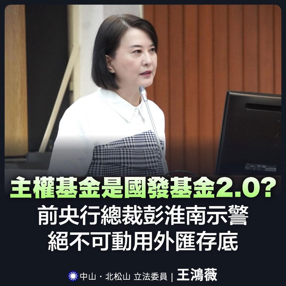王鴻薇說,立法院也因此才成立「國家發展基金不當投資暨管理失職調查委員會」,針對相關涉弊問題進行調查。如今恐怕是國發基金被放大檢視下,賴清德為了規避監督,巧立名目生出新的「主權基金」,又要虧空國庫多少錢?扶植多少綠友友出來?