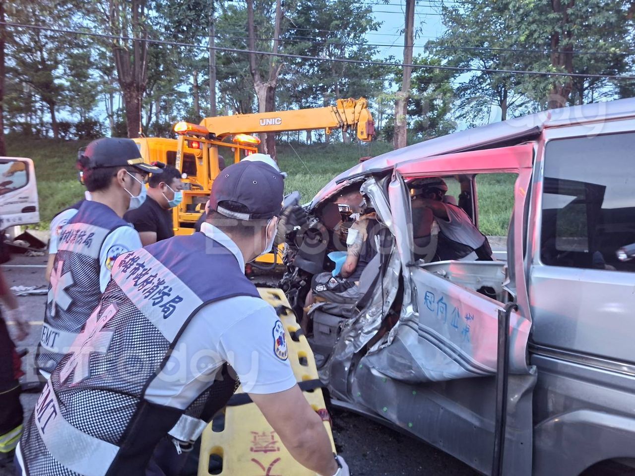 ▲▼高雄大寮發生廂型車與貨車的車禍,廂型車駕駛一度受困車內。(圖/記者吳奕靖翻攝,下同)