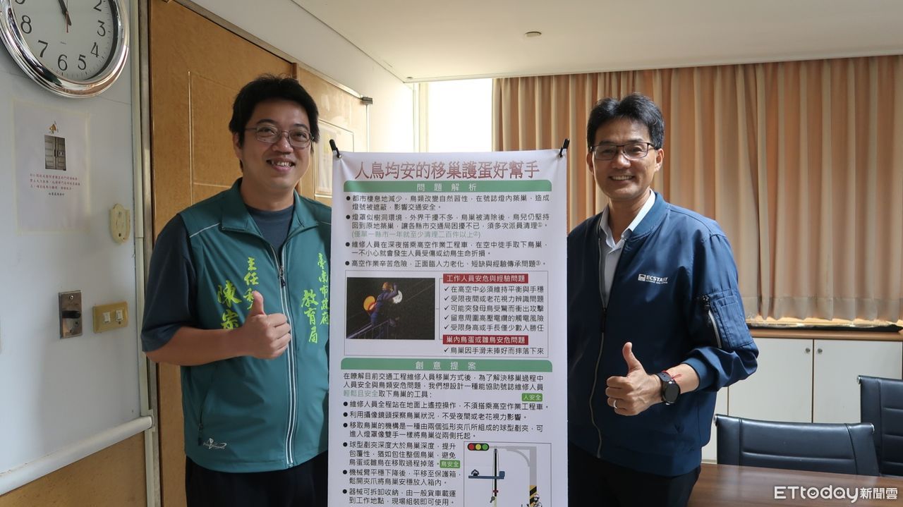 獲獎的學生聯隊成員包含後甲國中林瑀喬、陳以勒,復興國中林彥葶及中信國際教育黃泓鈞,他們鎖定「交通號誌燈罩常成鳥巢」的真實問題,設計出結合電控系統、兼顧人員安全與保護雛鳥的「移巢工具」,挑戰跨學科知識整合與實作表現,最終以穩定操作與創新構思獲得評審青睞。