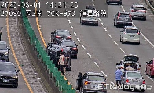 ▲今天下午2時20分於國3北向70.8公里處發生2輛小客車追撞事故。(圖/高公局提供)