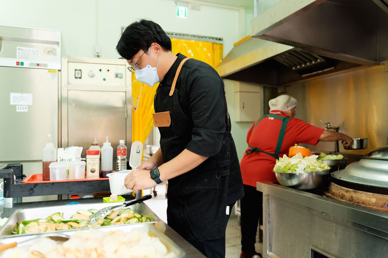 ▲阿里山暖暖老人食堂廚師烹煮部落長輩餐食。