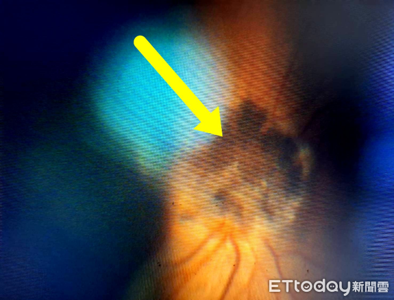 收治病例的達特楊眼科聯盟執行長洪啟庭表示,一名53歲的陳姓女上班族,去年12月突感左眼出現大片飛蚊,且左眼下方視野明顯缺損。就醫檢查發現,女子的左眼視力僅剩0.6,視神經盤上方有圓形褐黑色血塊,部分視網膜血管大量滲漏,導致玻璃體發炎出血,部分血塊也變成纖維化組織,形成大片飛蚊症。