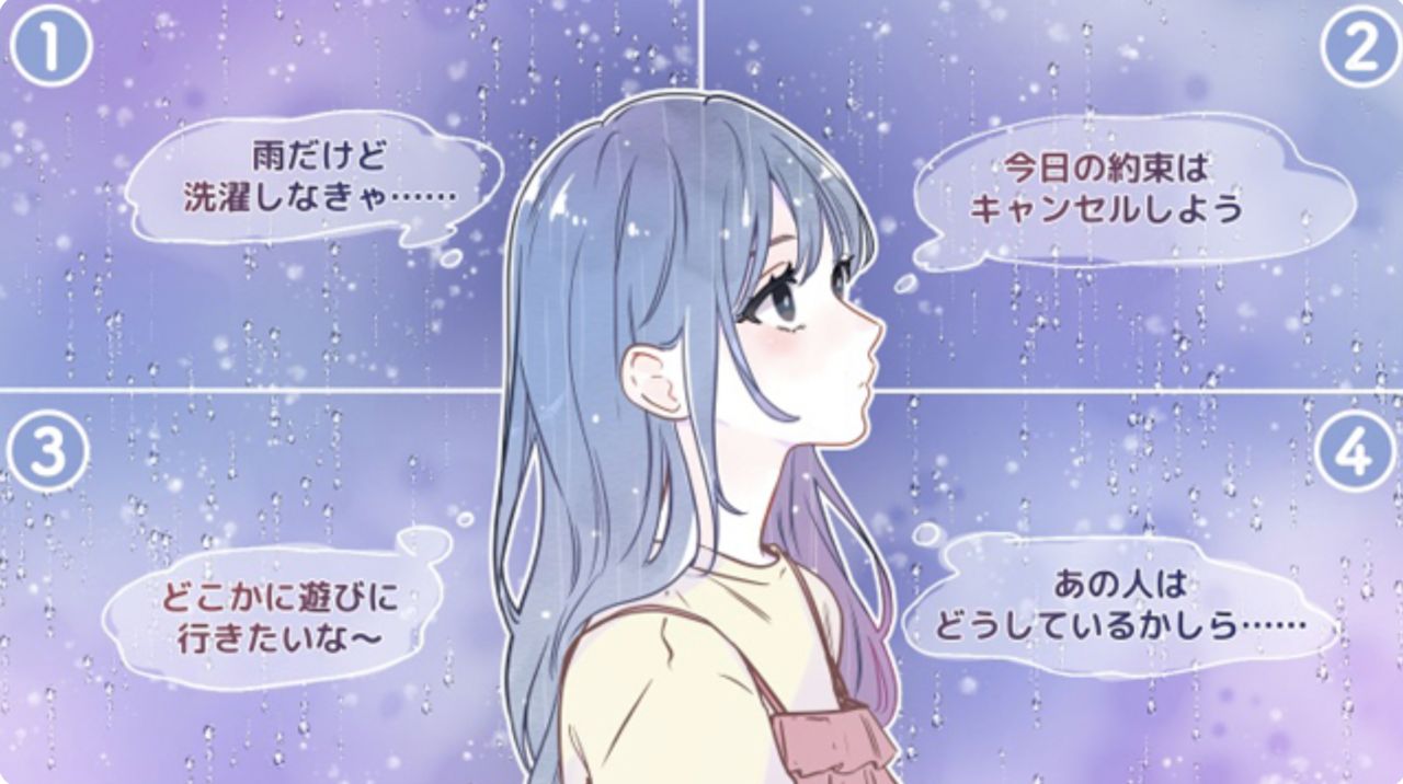 想像一下,有位女子正站在窗邊,靜靜地望著外頭綿綿細雨。此時此刻,她的腦中會冒出什麼樣的念頭呢?以下四個選項,直覺選一個,就能看出你什麼時候最容易心神不寧、情緒低落!
