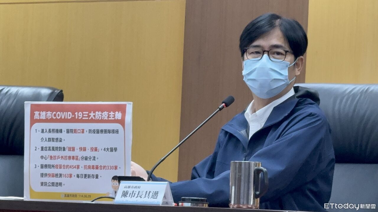 陳其邁表示,新冠疫情流感化,研判6、7月為高峰期,為維持急診量能,高雄落實三大防疫主軸,包括進入長照機構、醫院戴口罩,防疫醫療團隊積極介入群聚感染;二、重症高風險對象「就醫、快篩、投藥」,4大醫學中心設「急診戶外診療專區」分級分流;三、每日更新合約醫療院所疫苗、快篩檢測及抗病毒藥存量,資訊公開透明。
