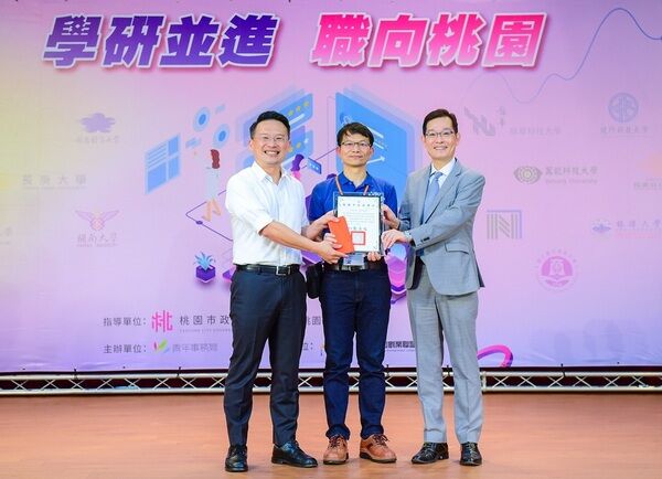 ▲中原大學代表受獎,展現深耕半導體實務人才培育計畫的優異成果。(左起:蘇俊賓副市、吳啟彬主任、閻亢宗主任秘書)