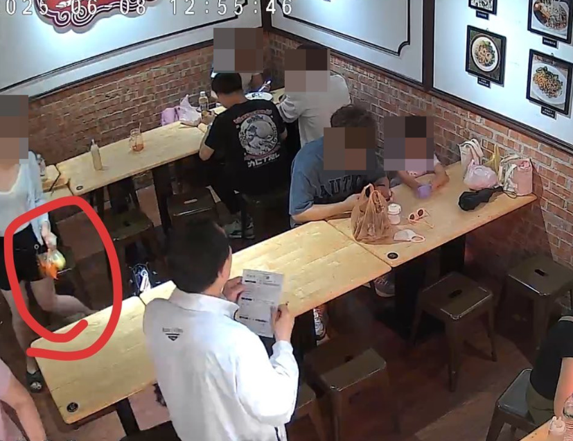 另從監視器畫面顯示,該名綁著低馬尾、身穿黑短褲並戴口罩的女顧客,走入用餐區後將多個醬料罐中的內容物一掃殆盡,誇張行徑也引來在場許多民眾側目,也讓店家事後無奈表示「我不會罵人,但是真的很氣」。